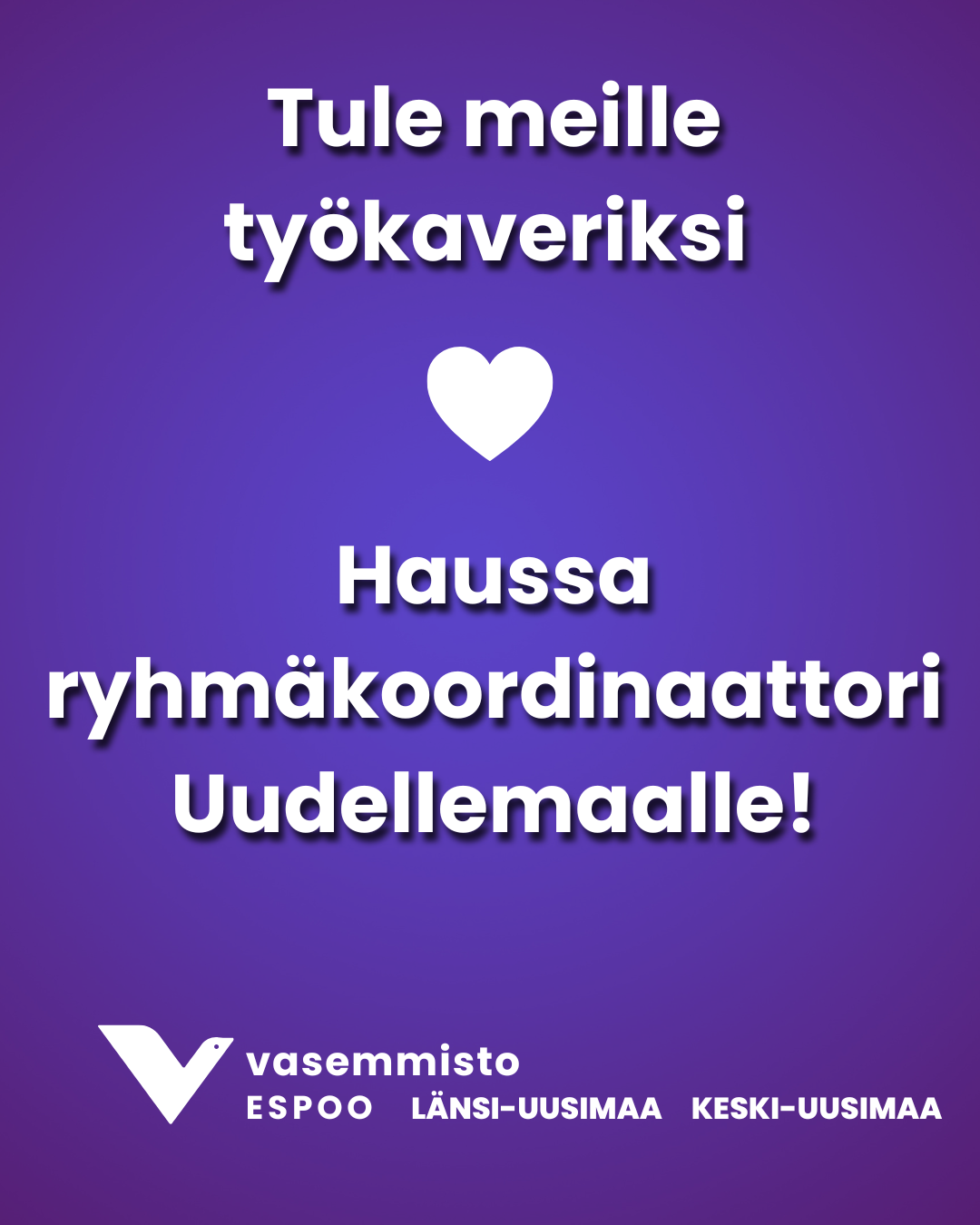 Jos olet itseohjautuva, monet langat käsissäsi pitävä ja haasteista innostuva tyyppi, joka syttyy sotesta, kaupunkipolitiikasta, viestinnästä ja järjestötyöstä, saatat olla etsimämme henkilö. Haemme ryhmäkoordinaattoria tukemaan vasemmistoliiton Länsi-Uudenmaan ja Keski-Uudenmaan aluevaltuustoryhmien sekä vasemmistoliiton Espoon valtuustoryhmän toimintaa.