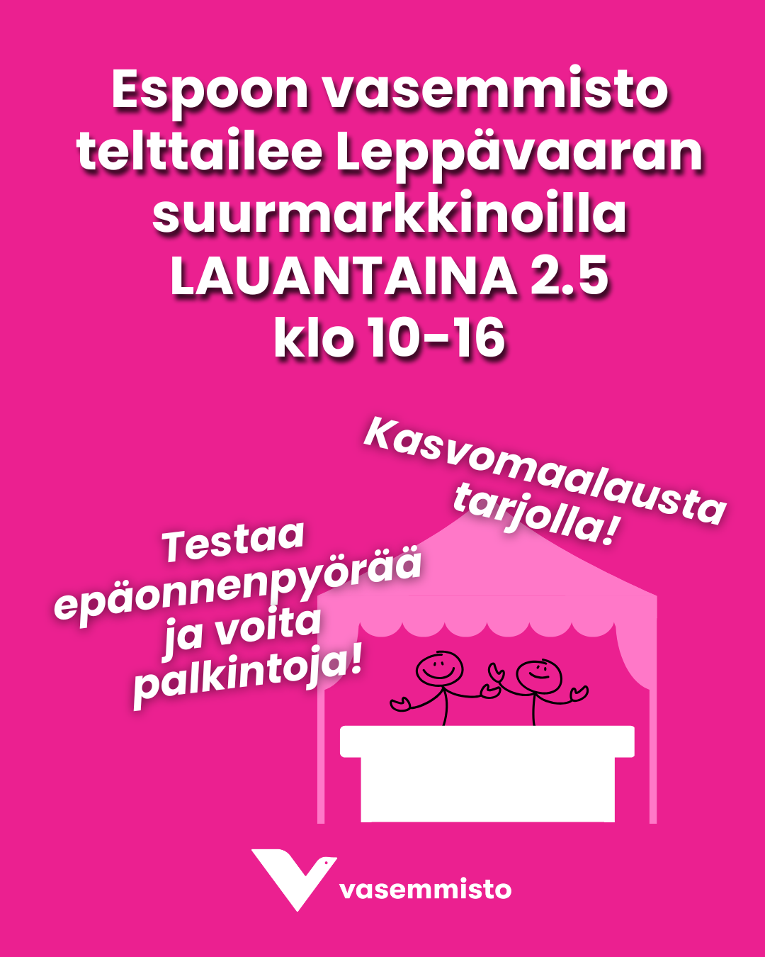 Tule mukaan tekemään oikeudenmukaisempaa ja vastuullisempaa Espoota osallistumalla tapahtumiimme, ehdokkaidemme kampanjointiin tai äänestämällä ehdokkaitamme.