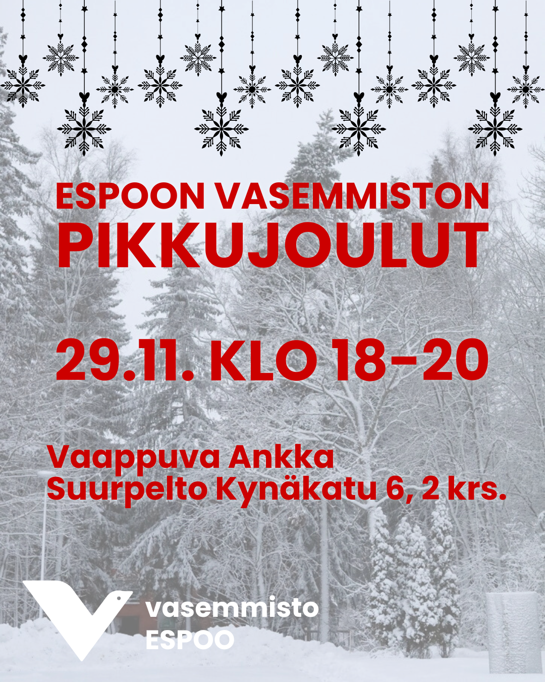 Ma 1.12.2025 klo 17.30-20.00 Espoon Vasemmiston valtuustoryhmän kokous