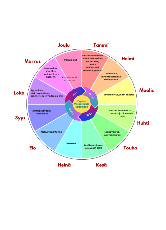 20.11. | 17:00 18:00 19:00 | Hallituksen kokous Kevätkokous Syyskokous | Paikka tiedossa myöhemmin | Espoon vasemmisto |